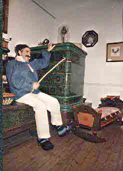 auf einem seiner wunderschönen Kachelöfen.